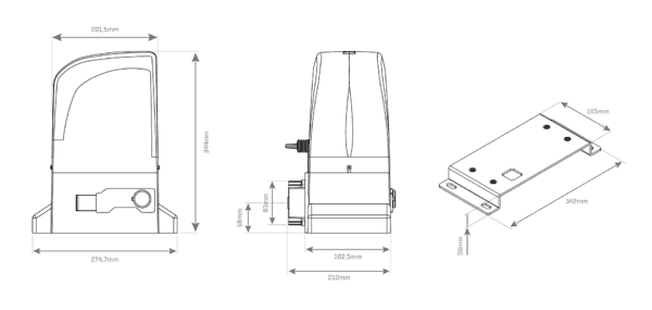 Medidas motor PUERTA corredera OL1500KG: